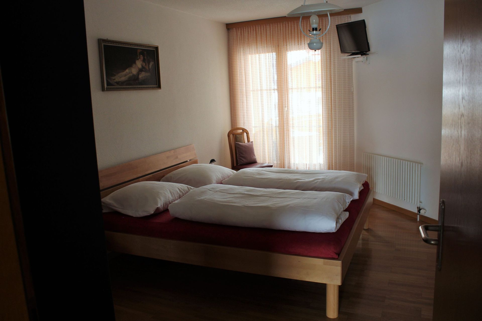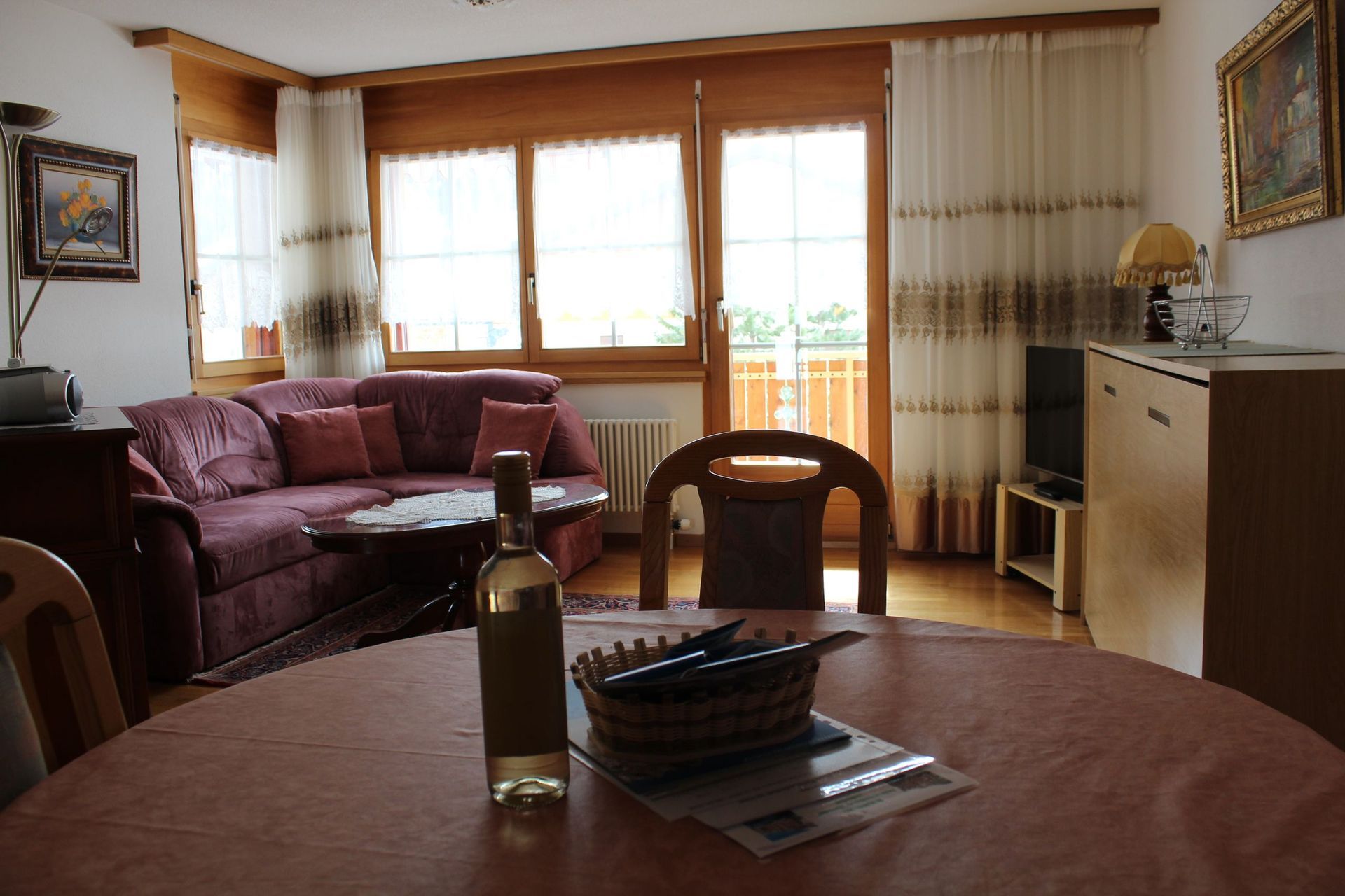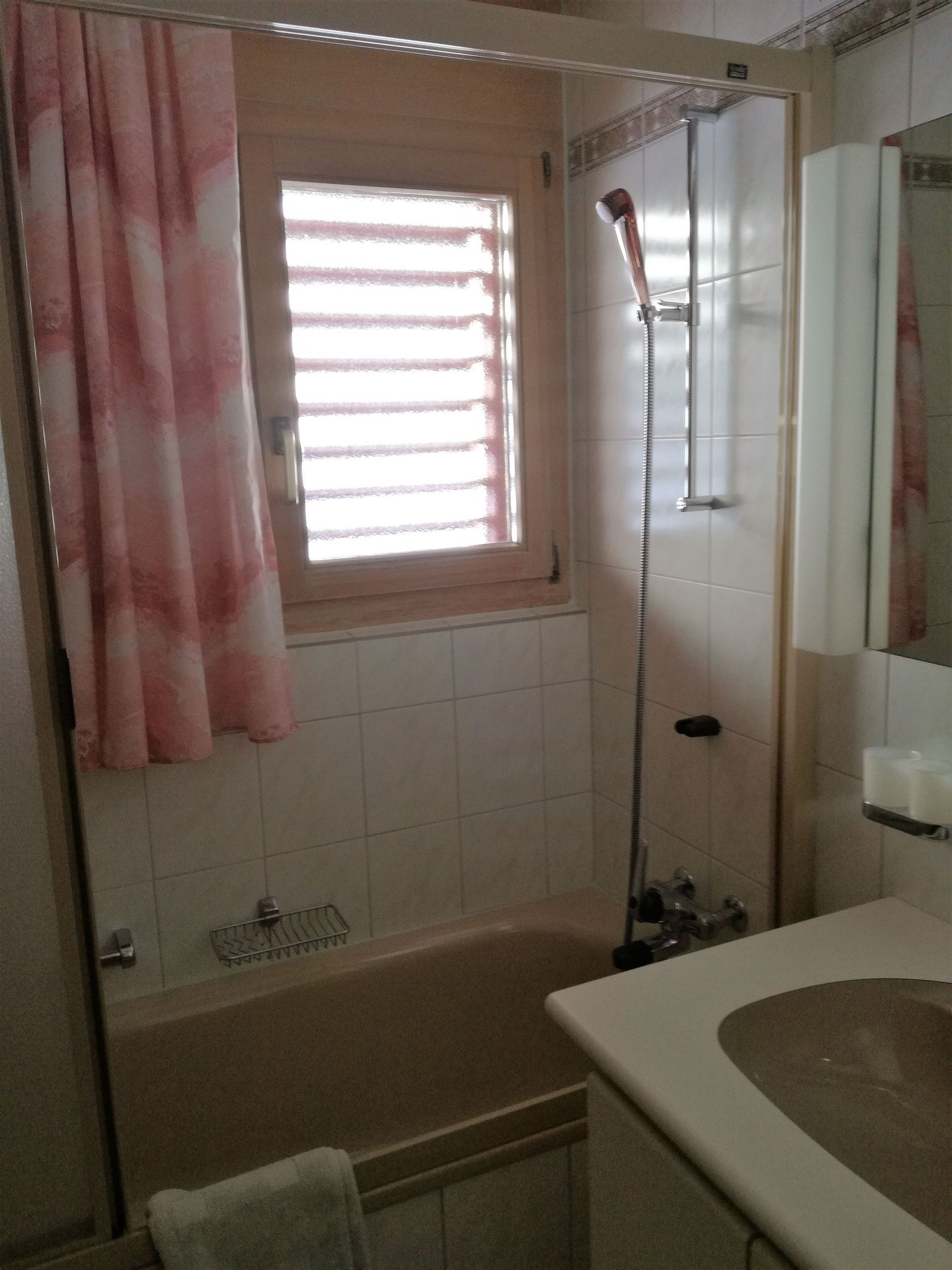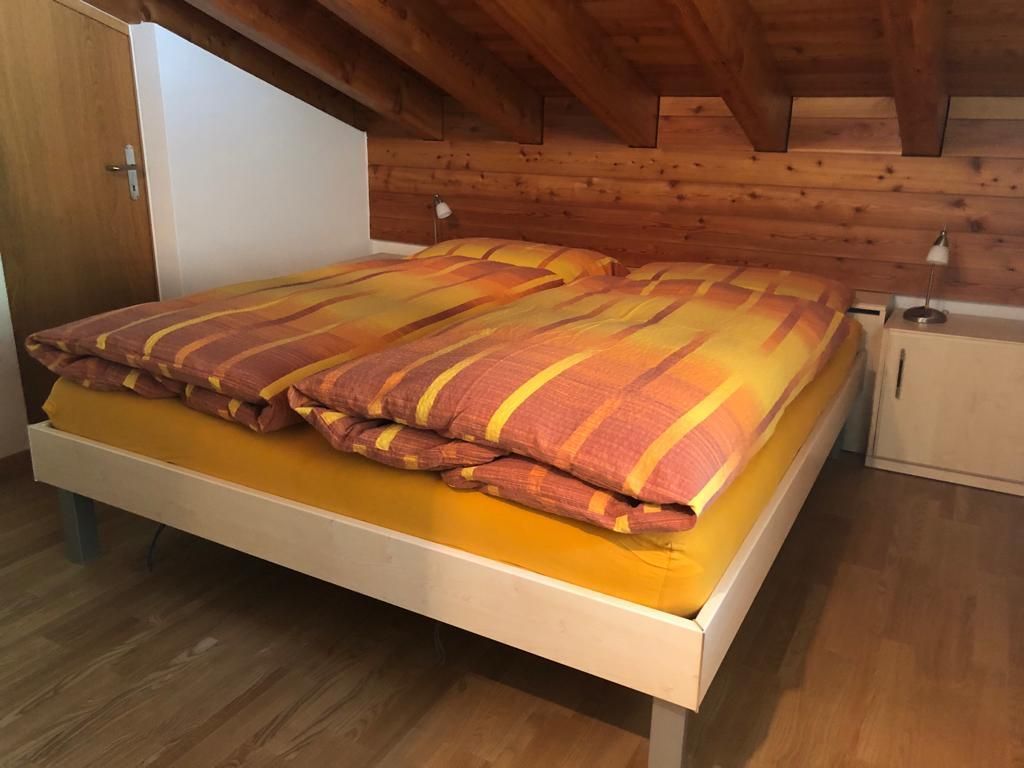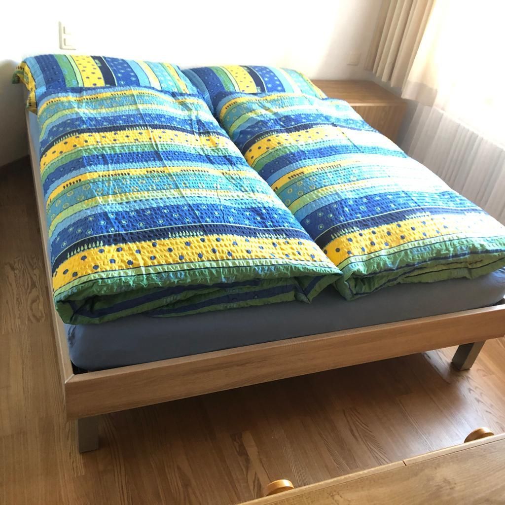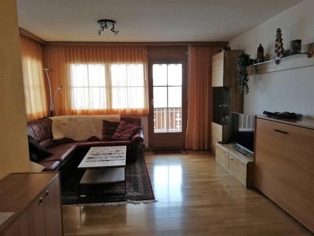 Wohnzimmer, 1 Doppelschlafzimmer, 2 Klappbetten, separate Küche mit Geschirrspüler, Essecke, Telefon, Radio, 2 TV, Bad und WC, Südbalkon, Tiefgaragenplatz inbegriffen. Mit Internet aber ohne Telefon. Waschmaschine und Tumbler im Haus. Rollstuhlgängig.