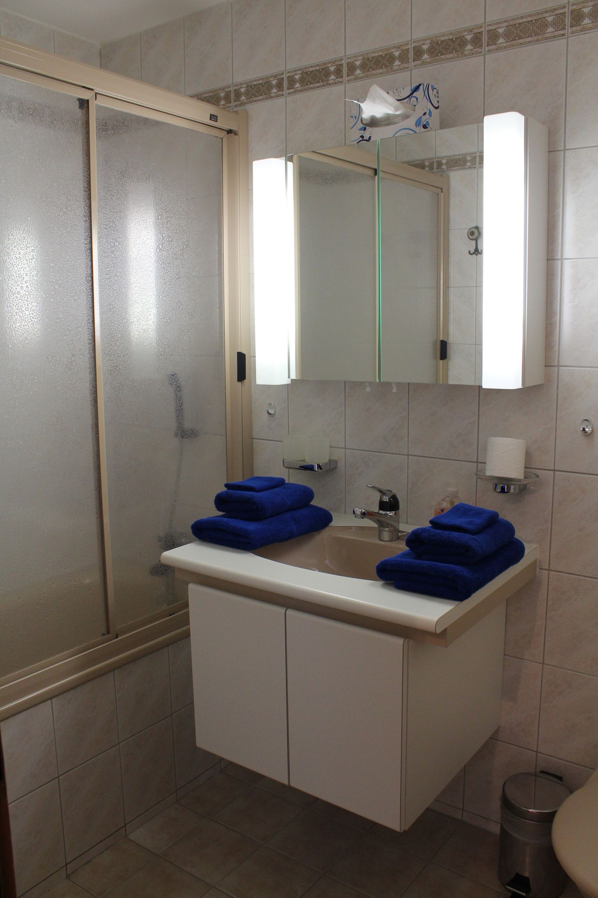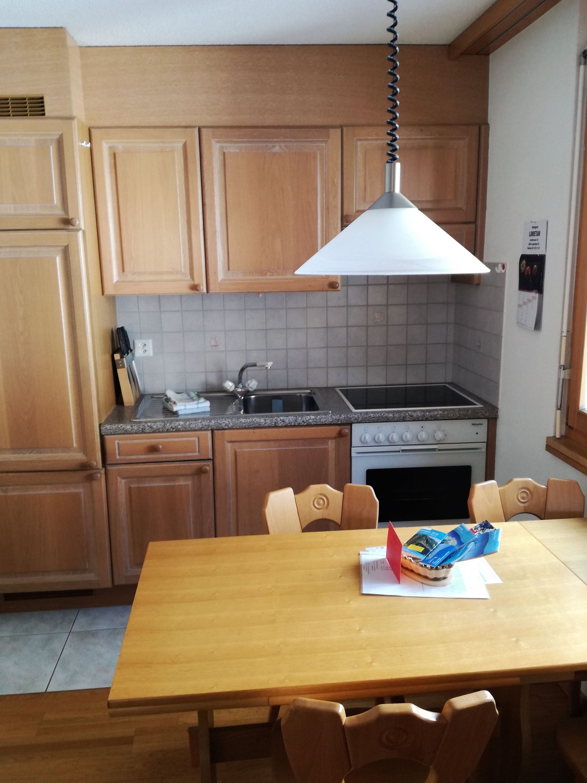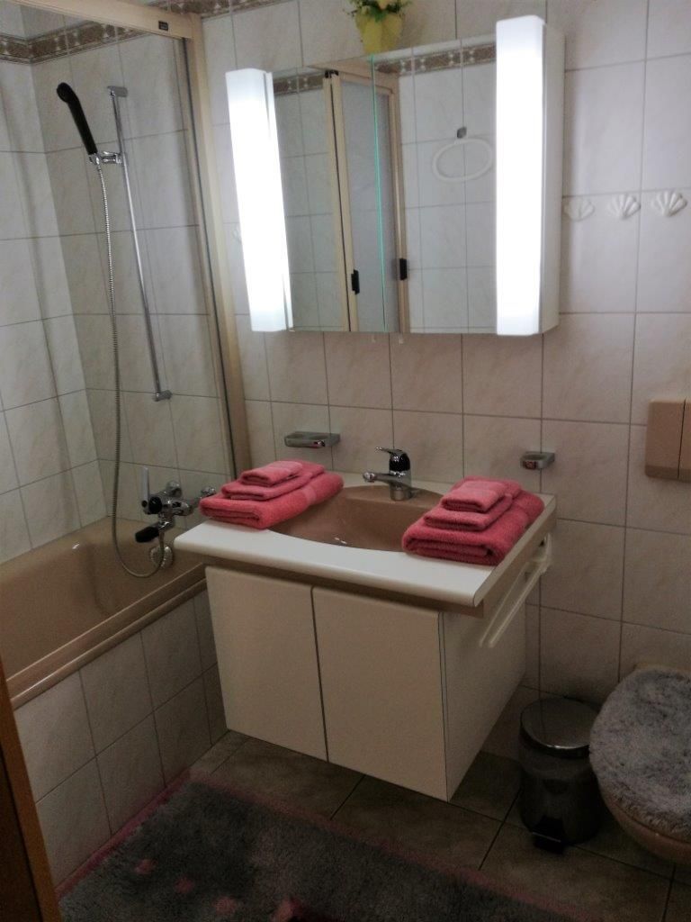 Wohn-/Esszimmer, gratis W-LAN, TV, Radio, separate Küche mit Geschirrspüler und Mikrowelle, 2 Doppelschlafzimmer und 1 Schlafzimmer mit 2 Einzelbetten, Bad/WC, zusätzlich separates WC, grosser Süd-Balkon (20m2), 2 Garagenplätze in der Tiefgarage. Waschmaschine und Tumbler im Haus. Nichtraucherwohnung! Haustiere sind nicht erlaubt!