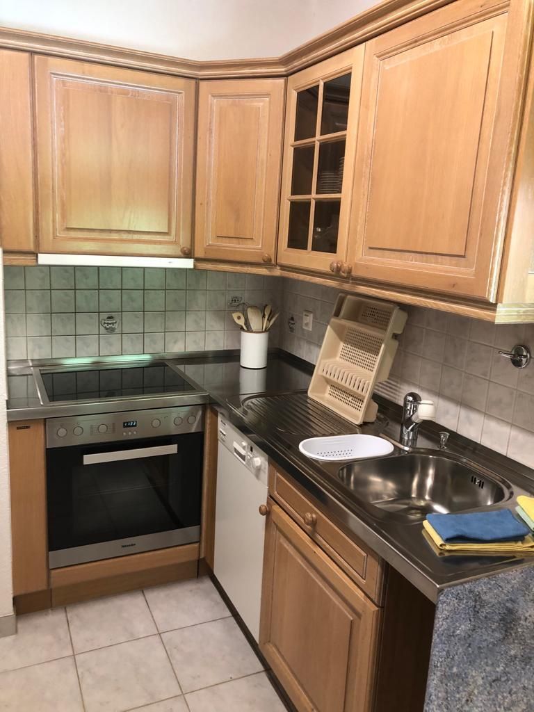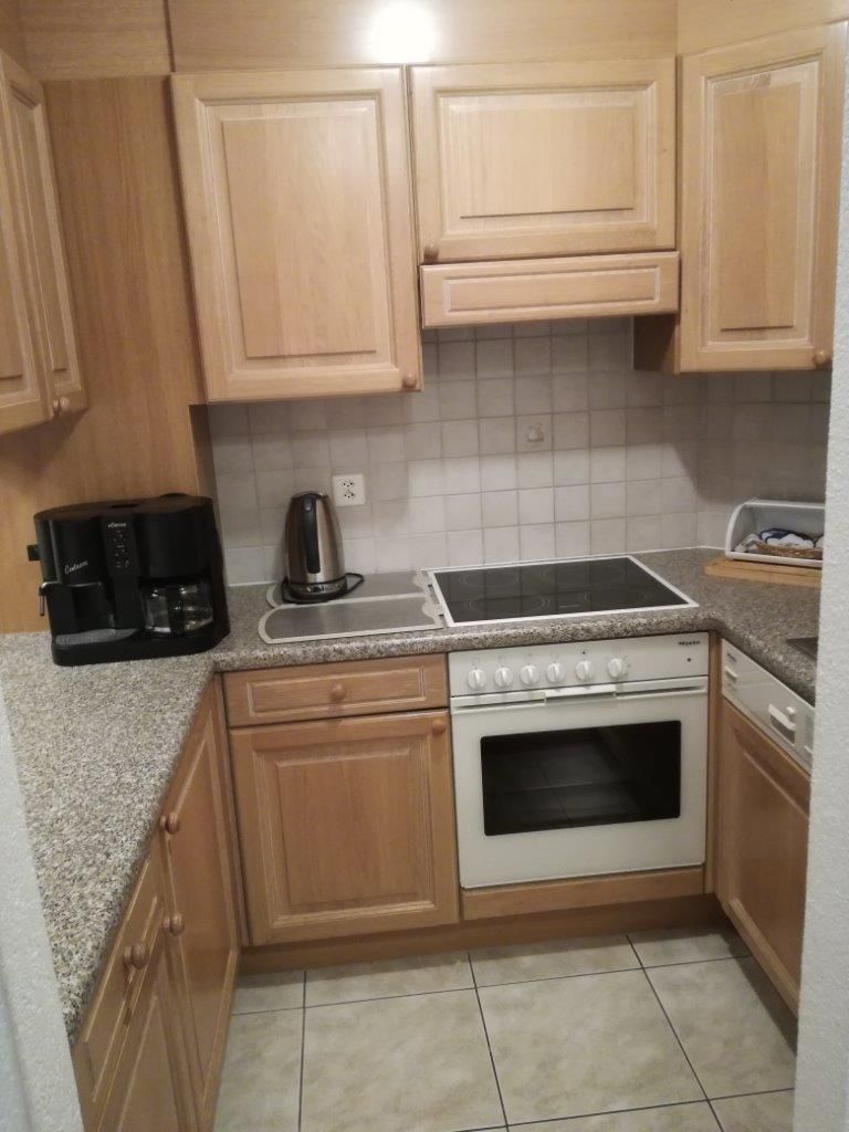 Wohn-/Esszimmer, Küche mit Geschirrspüler, Mikrowelle und Kaffemaschine (Kapsel und Filter), 1 Doppelschlafzimmer, zwei Einzelbetten im Wohnzimmer, Bad/WC, Südbalkon, W-LAN, Telefon, Radio, TV vorhanden. Waschmaschine und Tumbler im Haus. Tiefgaragenplatz inbegriffen. Nichtraucherwohnung! Haustiere nicht erlaubt!